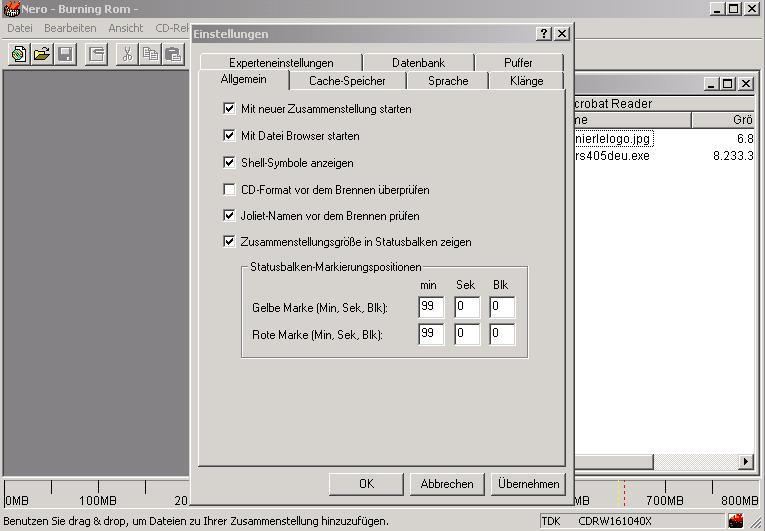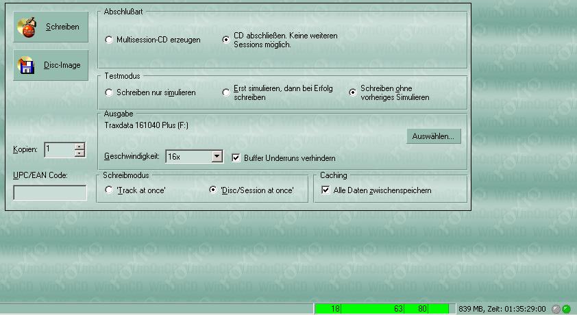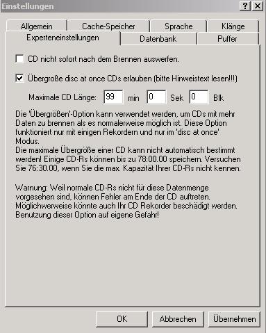 Einstellungen für WinOnCD